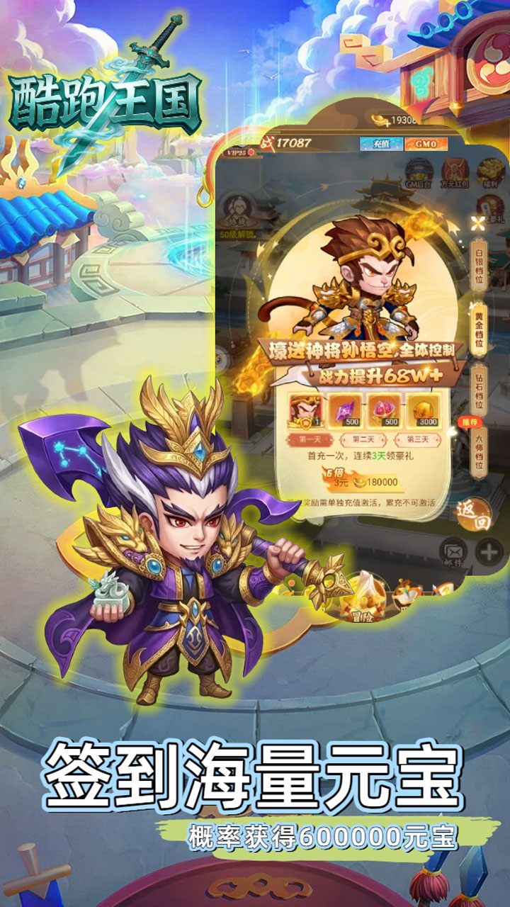 4.首充:直接送神将孙悟空,全体控制,战力直接拉升百万,各种折扣超级大返利活动送不停