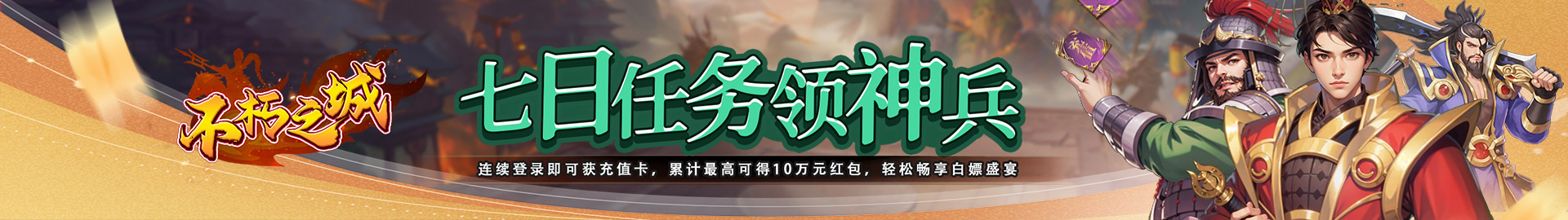七日任务领神兵:完成七日日常任务即可领取青龙长枪、神将卡包等终极珍稀大奖