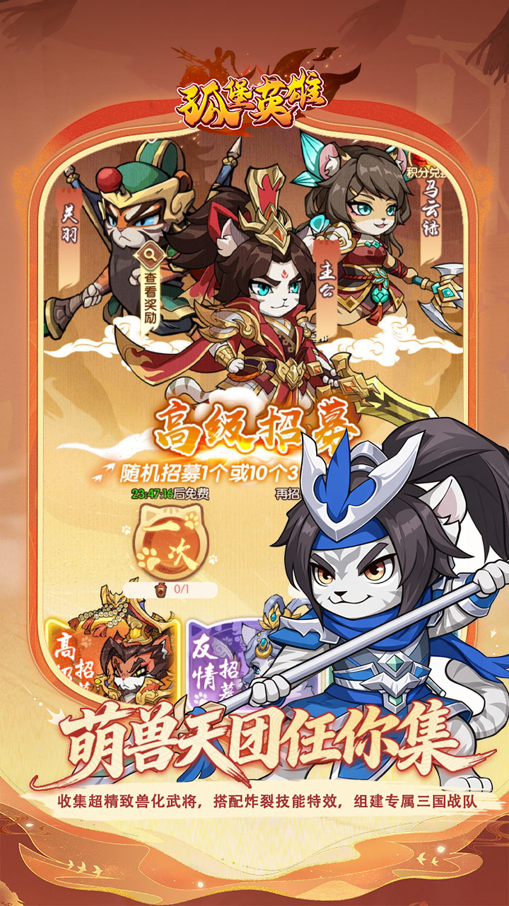 萌兽天团任你集:收集超精致兽化武将,搭配炸裂技能特效,组建专属三国战队