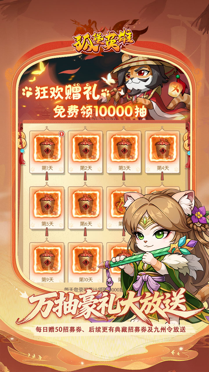 万抽豪礼大放送:每日赠50招募券、后续更有典藏招募券及九州令放送