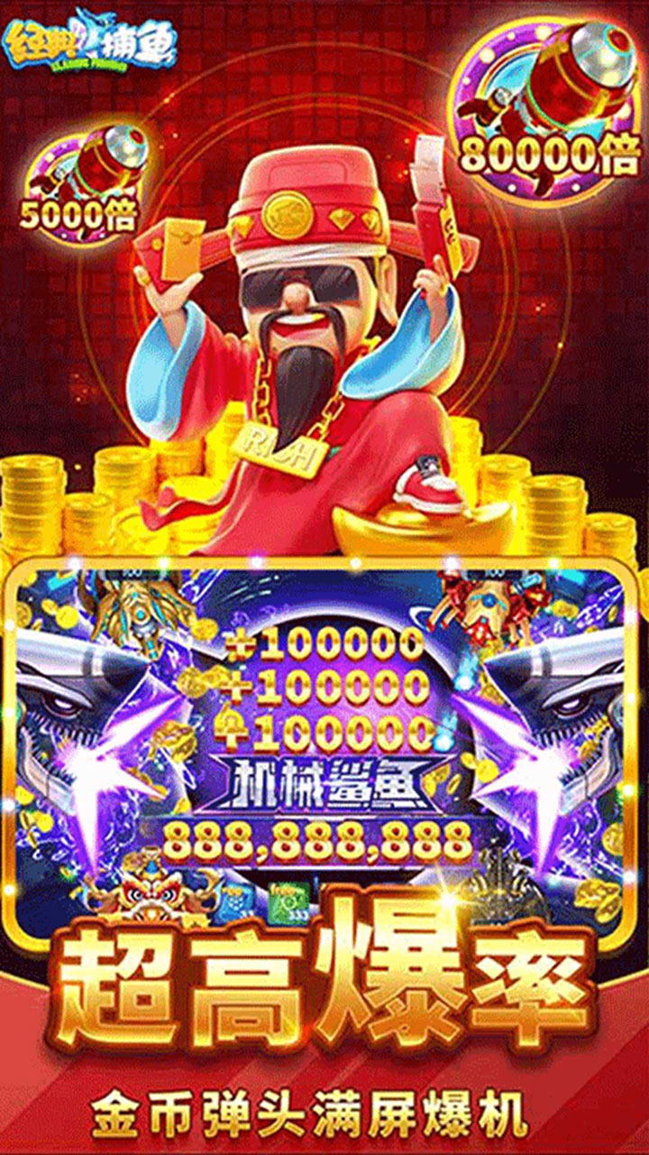 经典的街机捕鱼玩法,百万炮倍,满屏爆金,轻松一炮百亿炸翻天!