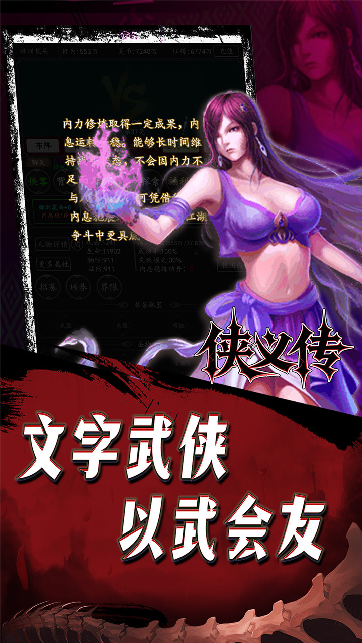 这是一款国风武侠文字冒险手游。在这片浩渺江湖中,你将以无名少侠的身份开启命途。穿过竹林剑影偶遇隐世高人,于客栈对弈窥见江湖秘辛,在崖间秘洞拾得失传残卷。正派与魔教的千年纠葛、名门子弟的生死情义、市井游侠的快意恩仇,皆化作跃动的文字徐徐展开。无需繁琐操作,静观江湖百态随日月轮转,每段邂逅都可能触发命运转折。水墨丹青绘尽恩怨浮沉,指尖轻点间,属于你的武林传说正悄然落笔。